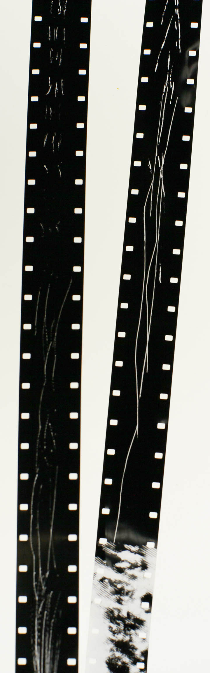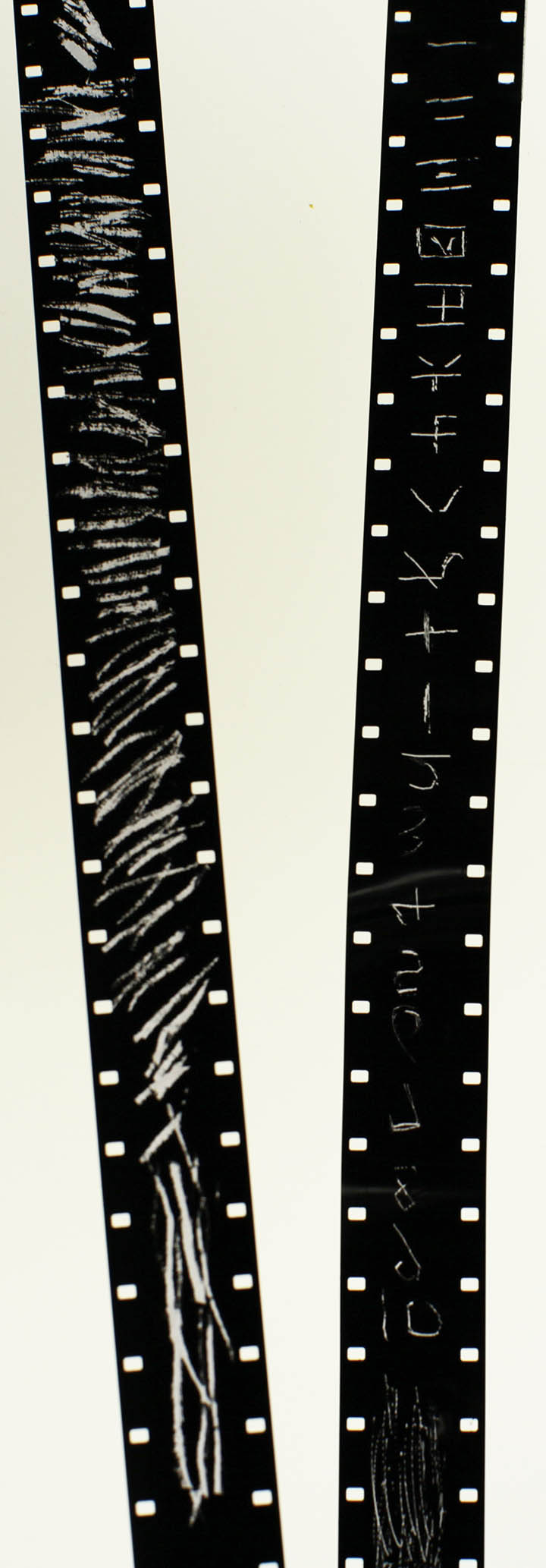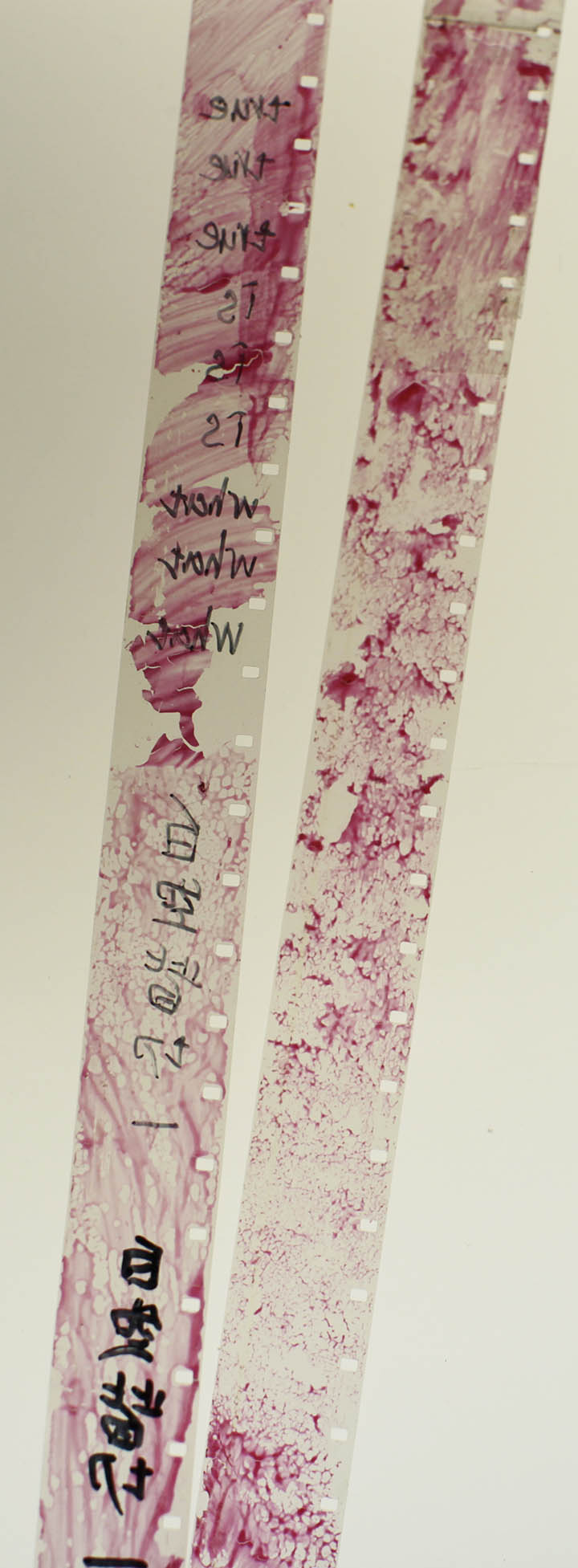 16mm film, red ink, sharpies, hand drill, Elmo